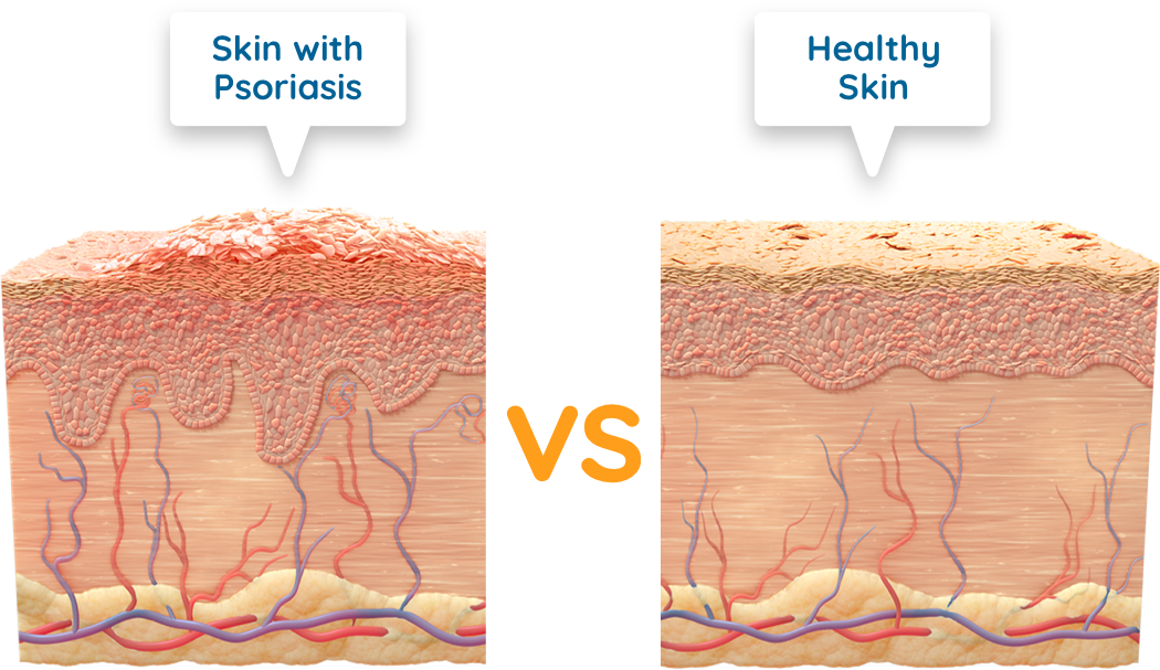 正常皮肤层与银屑病皮肤层差异示意图[2]