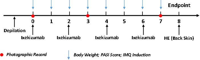 使用IMQ诱导B6-hIL-17A小鼠银屑病模型的建立及Ixekizumab药效验证实验方案